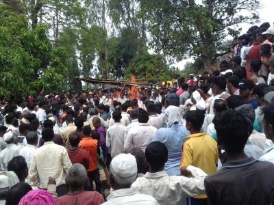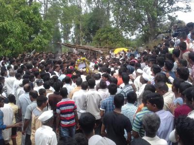 कोल्हापूर जिल्ह्यातील बांदिवडे येथे जोतिबा यात्रेनिमित्त झालेल्या कुस्त्यांच्या मैदानात सोमवारी निलेश विठ्ठल कंदुरकर हा अवघा १९ वर्षीय उमदा पैलवान कुस्ती खेळताना मानेवर पडल्याने गंभीररित्या जखमी झाला होता. त्याने कऱ्हाडच्या कृष्णा हॉस्पिटलमध्ये सहा दिवसाची मृत्यूशी झुंज दिली. शुक्रवारी पहाटे त्याची प्राणज्योत मालवली. त्याचे पार्थिव दुपारी त्याच्या पन्हाळा तालुक्यातील बादेवाडी या गावी आणण्यात आले. त्याच्या अंत्यदर्शनाला पंचक्रोशी लोटली होती. त्याच्यावर गावातच अंत्यसंस्कार करण्यात आले. (छाया : विक्रम पाटील, करंजफेण)