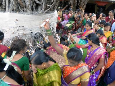 करवीर निवासिनी श्री अंबाबाई मंदिरातील रामाचा पार येथील वडाच्या पूजनासाठी महिलांची मोठी गर्दी होती. नवविवाहितांनी पुरोहीतकडून पूजन करवून घेतले. .(छाया : नसीर अत्तार)