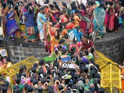 एकाचवेळी पारावर गर्दी होवू नये यासाठी देवस्थान समितीच्यावतीने बॅरिकेटिंग करण्यात आले होते. .(छाया : नसीर अत्तार)