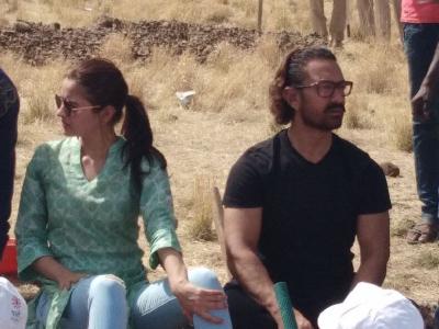 श्रमदान शिबिरात आमीर आणि आलिया एका निवांत क्षणी.