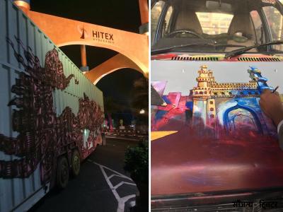 कार, रिक्षा तसंच दुचाकीवर विविध कलाकृती यावेळी कलाकारांनी सादर केल्या