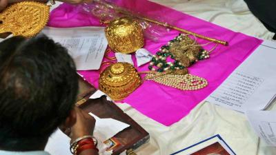 मोठ्या बंदोबस्तात जिल्हा प्रशासनाच्या तिजोरीतून हे दागिने मंदिरात आणण्यात आले. त्यानंतर, प्रशासकीय व पोलीस अधिकाऱ्यांच्या समक्ष मूर्तींना दागिन्यांनी सजवण्यात आले.