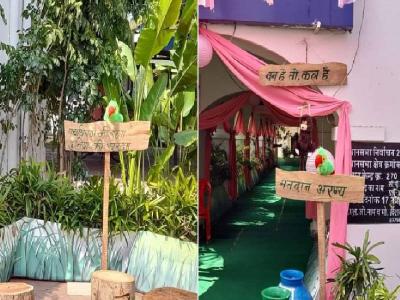 आदर्श मतदान केंद्र 3R च्या थीमवर निसर्गाचे रक्षण करण्याचा संदेश देण्यात आला आहे.
