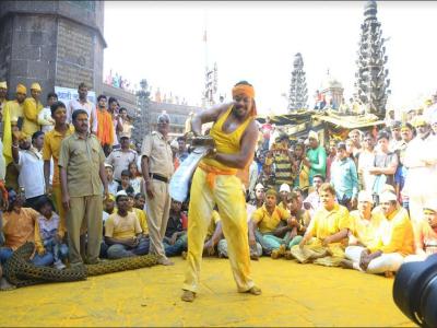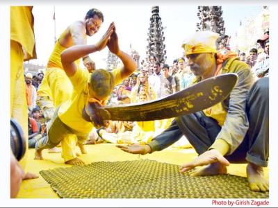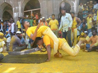 42 किलोच्या खंडा तलवारीचे 'मर्दानी खेळ' ; तब्बल 15 तास रंगला जेजुरीचा 'मर्दानी दसरा'