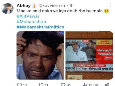 नेटकरी सोशल मीडियाच्या माध्यमातून राजकीय मंडळींची खिल्ली उडवत आहेत. काहींनी अजित पवारांच्या पहाटेच्या शपथविधीचे फोटो पोस्ट केले आहेत.