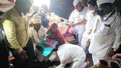 ... अन कृषीमंत्र्यांनी चक्क शेतकरी दाम्पत्याचे पायच धरले