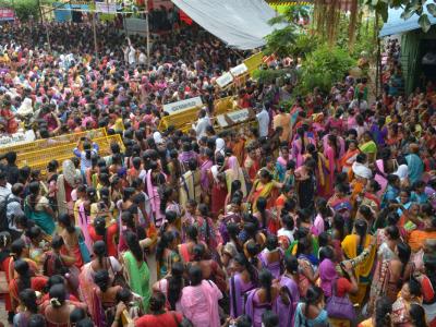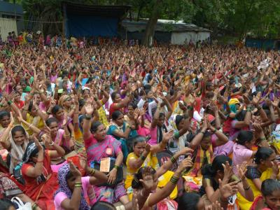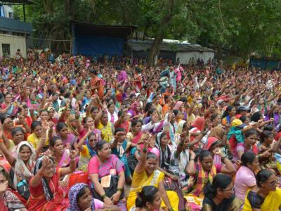 राज्यातील ९७ हजार सेविका आणि ९६ हजार मदतनीस, तसेच १२ हजार मिनी अंगणवाडी सेविका यांना सेवा ज्येष्ठतेनुसार मानधनवाढीचा अहवाल शासनाला दिला. (छाया- दत्ता खेडेकर)