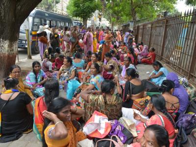 शासन मानधनवाढ करीत नसल्याने कृती समितीने ११ सप्टेंबरपासून बेमुदत संप करण्याची घोषणा केली. (छाया- दत्ता खेडेकर)