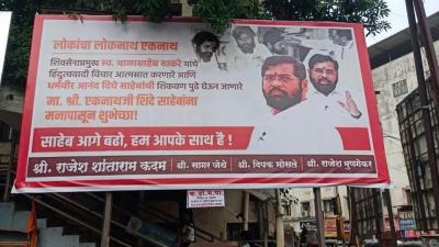 अनेक ठिकाणी उद्धव ठाकरेंच्या समर्थनार्थ बॅनर्स लावले आहेत तर काही ठिकाणी एकनाथ शिंदे यांच्या भूमिकेला पाठिंबा देणारे बॅनर्स झळकले आहेत. त्यामुळे उद्धव ठाकरे यांच्या नेतृत्वालाच एकनाथ शिंदे यांनी हादरा दिला आहे.