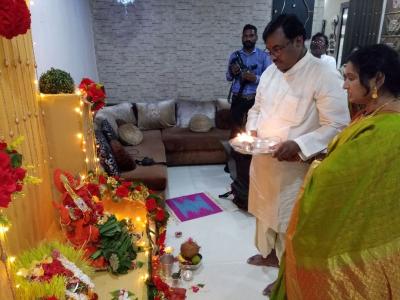 राज्याचे वित्त मंत्री सुधीर मुनगंटीवार यांनी चंद्रपूर येथील निवासस्थानी सपत्नीक श्रीं ची स्थापना केली.