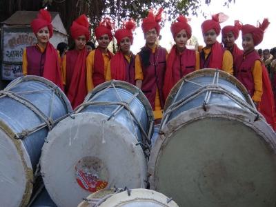ग्रंथदिंडीमधील शोभायात्रेतील ढोलपथकामध्ये सहभागी झालेल्या तरुणी.