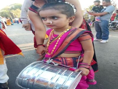 ढोलपथकामधील ही चिमुकली सर्वांचे लक्ष वेधून घेत होती.