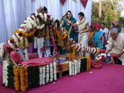 ९१व्या अखिल भारतीय मराठी साहित्य संमेलनाच्या पूर्वसंध्येला राजमाता शुभांगिनी राजे गायकवाड़ यांनी उपस्थित राहून शुभेच्छा दिल्या.