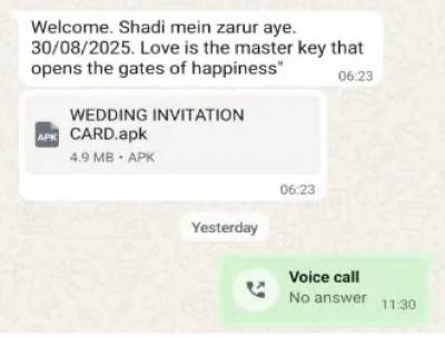 या मेसेजमध्ये लग्नाचे कार्ड दाखवून त्याचा संवेदनशील डेटा चोरण्यासाठी वापरली जात होती. पीडितेने फाइलवर क्लिक करताच, सायबर गुंडांनी डेटामध्ये प्रवेश केला आणि १,९०,००० रुपये चोरले.