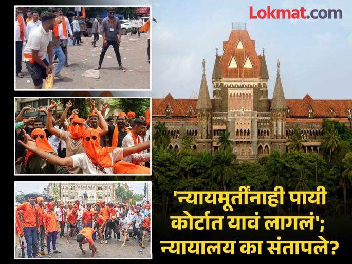 1 / 8मराठा आरक्षणाच्या मागणीसाठी मनोज जरांगे यांनी मुंबईतील आझाद मैदानात उपोषण सुरू केले आहे. त्यांना पाठिंबा देण्यासाठी राज्याच्या वेगवेगळ्या भागातून लोक मोठ्या संख्येने आले असून, त्यामुळे दक्षिण मुंबईतील काही भागातील वाहतूक व्यवस्था कोलमडली आहे.2 / 8आझाद मैदान, छत्रपती शिवाजी महाराज टर्मिनस, मुंबई उच्च न्यायालयासमोर परिसर, मरीन ड्राईव्ह या परिसरात आंदोलक मोठ्या संख्येने दिसत आहे. आंदोलकांनी रस्त्यावरच ठाण मांडल्याने मंगळवारी (२ सप्टेंबर) मुंबई उच्च न्यायालयाच्या न्यायमूर्तींना कारमधून उतरून फूटपाथवरून पायी कोर्टात जावं लागलं. 3 / 8याच मुद्द्यावरून कोर्टाने मंगळवारी राज्य सरकारला झापले. आम्ही राज्य सरकारच्या कामावरही समाधानी नाही. राज्य सरकार काय होतं, हे आम्हाला जाणून घ्यायचं आहे. सुनावणी घेण्यासाठी या न्यायालयाच्या न्यायमूर्तींना आंदोलक रस्त्यावरून चालत जाण्यासाठी कसे भाग पाडू शकतात?', अशा शब्दात कोर्टाने राज्य सरकारला फटकारले.4 / 8'आंदोलक रस्त्यावर नाचत आहेत म्हणून सरकार उच्च न्यायालयाच्या न्यायमूर्तींना बळजबरीने रस्त्यावरून चालत जायला भाग पाडू शकत नाही', असे न्यायालयाने राज्य सरकारला सुनावले.5 / 8उच्च न्यायालयाच्या न्यायमूर्तींनी सांगितलं की, 'आज आमच्यापैकी एक न्यायमूर्ती (रवींद्र घुगे) हे १२.३० वाजता न्यायालयात सुनावणी घेण्यासाठी सरकारी कारने येत होते. शहर दिवाणी न्यायालय आणि मुंबई उच्च न्यायालयाच्या इमारतीच्या दरम्यान प्रचंड अडथळा होता. 6 / 8अनेक आंदोलक रस्त्यावर खेळत होते, अनेकजण नाचत होते आणि काही रस्त्यावर झोपलेले होते. न्यायमूर्ती घुगे हे आंदोलकांच्या गर्दीच्या बाजूने दिवाणी न्यायालयासमोरील फूटपाथवरून चालत हायकोर्टात आले. वकील कंथारिया याही अडकल्या होत्या. त्याही पायी आल्याचे कळले. उच्च न्यायालयालच वेढा पडला आहे, असे न्यायमूर्तींनी कोर्टात सांगितले.7 / 8मनोज जरांगे यांची बाजू कोर्टात मांडणारे वकील सतीश मानशिंदे याच मुद्द्यावर म्हणाले की, 'न्यायमूर्ती, मी समजू शकतो, पण एकाही नागरिकाला इजा पोहचलेली नाहीये, कोणताही अडथळा झालेला नाही.'8 / 8त्यावर न्यायमूर्ती म्हणाले, तुम्ही काय म्हणत आहात? लोकांच्या मनात भीती आहे. शाळा बंद आहेत. न्यायमूर्तींना पायी जाण्यास भाग पाडले कारण आंदोलक नाचत आहेत. शहर अर्धमेलं झालं आहे आणि तुम्ही असं बोलत आहात', अशा शब्दात न्यायालयाने झापले.
