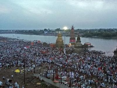 सुमारे ११ लाख भाविकांची मांदियाळी पंढरीत दाखल झाली असून चंद्रभागेत स्नान करताना भाविक