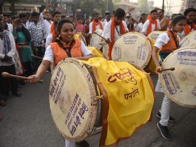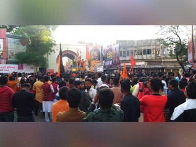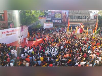 'जय भवानी, जय शिवाजी' जयघोषाने सारा आसमंत दुमदुमला आहे. शिवरायांना मानाचा मुजरा केला जात आहे.