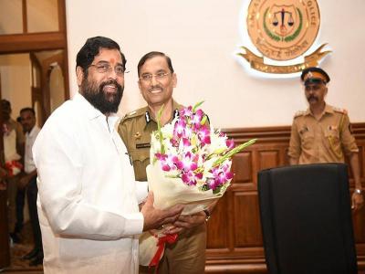 गृहमंत्री म्हणून पोलीस खात्याचा पदभार एकनाथ शिंदे यांच्याकडे आहे, त्यामुळे शिंदे यांचे पोलिस अधिकाऱ्यांकडून स्वागत करण्यात आले