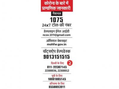 कोरोना व्हायरसशी संबंधित माहितीसाठी हेल्पलाईन नंबर.