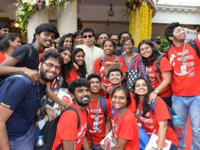 गायक शंकर महादेवन अभिनेता कवी शैलेश लोढा गृहनिर्माण मंत्री प्रकाश महेता आणि मुख्यमंत्री देवेंद्र फडणवीस यांच्यासह राजेंद्र दर्डा व देवेंद्र दर्डा