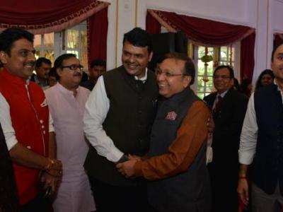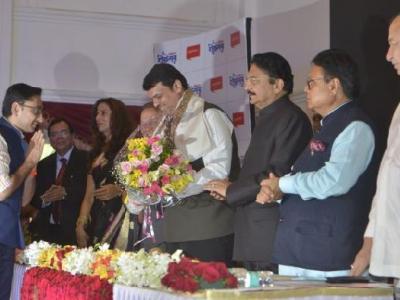 गायक शंकर महादेवन अभिनेता कवी शैलेश लोढा गृहनिर्माण मंत्री प्रकाश महेता आणि मुख्यमंत्री देवेंद्र फडणवीस यांच्यासह राजेंद्र दर्डा व देवेंद्र दर्डा