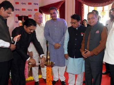 राज्यपाल सी. एच. विद्यासागर राव आणि मुख्यमंत्री देवेंद्र फडणवीस दीपप्रज्वलन करताना.