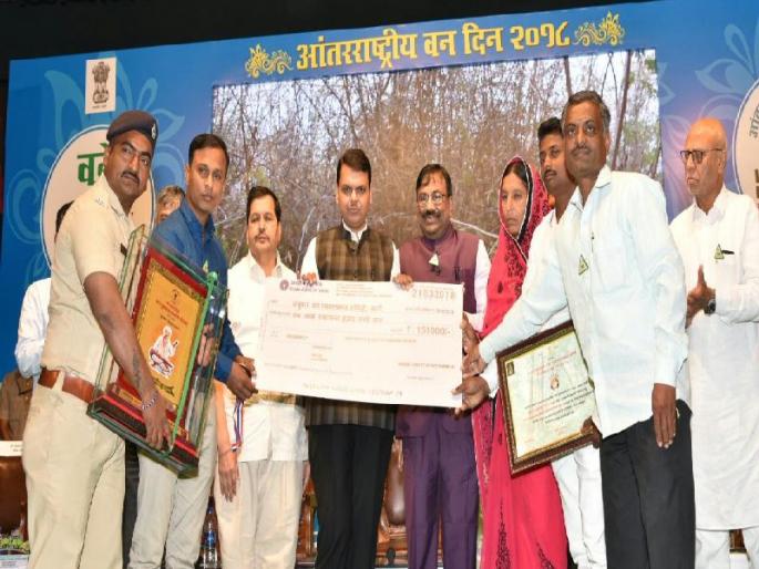 1 / 5आंतरराष्ट्रीय वन दिनाचे औचित्य साधत संत तुकाराम वनग्राम पुरस्कारांचे वितरण तसेच वनसेवेत उत्कृष्ट काम करणाऱ्या अधिकारी आणि कर्मचाऱ्यांचा गौरव आज मुख्यमंत्री देवेंद्र फडणवीस यांच्या हस्ते करण्यात आला.2 / 5पुरस्कार विजेत्यांना सन्मानित करताना मुख्यमंत्री देवेंद्र फडणवीस 3 / 5विजेत्यांना सन्मानित करताना वनमंत्री सुधीर मुनगंटीवार. 4 / 5या वेळी एका स्मरणिकेचेही प्रकाशन करण्यात आले. 5 / 5या कार्यक्रमाला शालेय विद्यार्थीही उपस्थित होते.