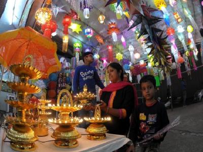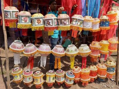 बाजारपेठांत जणू तारांगण अवतरावे असे रंगीबेरंगी आकाश कंदील सजले आहेत.