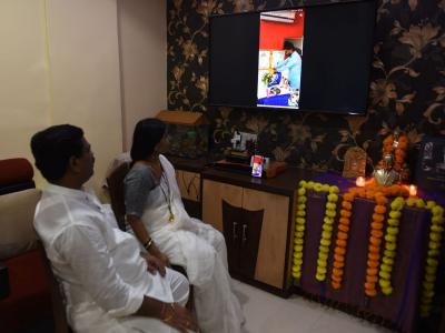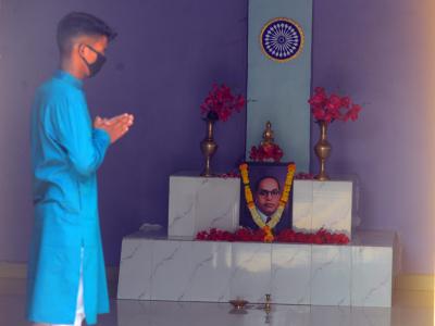 काही जणांनी घरातच संविधानाच्या प्रस्तावनेचं वाचन केलं, तर काहींनी घरातील बाबासाहेबांच्या पुतळ्याला अभिवादन केलं. (फोटोः सुशील कदम)