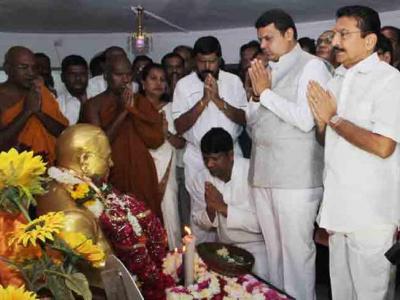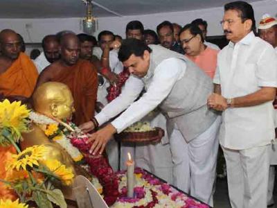 डॉ. बाबासाहेब आंबेडकर यांच्या ५८व्या महापरिनिर्वाणदिनी मुख्यमंत्री देवेंद्र फडणवीस यांनी चैत्यभूमी येथे जाऊन त्यांना आदरांजली वाहिली. बाबासाहेब आंबेडकरांच्या प्रस्तावित स्मारकाचं भूमीपूजन १४ एप्रिल रोजी करण्यात येणार असल्याचे मुख्यमंत्र्यांनी सांगितले.