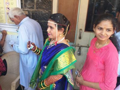पुण्यातील आधी लगान लोकशाहीचे म्हणत, लग्नासाठी नटलेल्या नवरीने थेट मतदान केंद्र गाठले आणि रांगेत उभे राहून मतदानाचा हक्क बजावला.