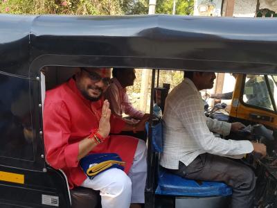 शिवसेना नेते गुलाबराव पाटील यांनी चक्क रिक्षातून प्रवास करत मतदान केंद्रावर हजेरी लावली.