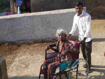 रायगड - खारगांव(तळा) येथे व्हील चेअरमधुन मतदानास जाताना दिव्यांग वृद्ध महिला मतदार