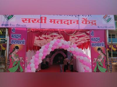 सखी मंचच्या माध्यमातून मतदान केंद्रावर हटके अन् लक्षवेधी सजावट करण्यात आली होती. या सजावटीमुळे मतदान केंद्राला जणू मंगल कार्यालयाचेच रुप आले होते.
