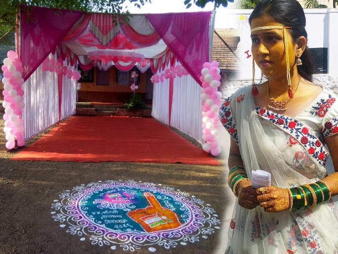 1 / 9रत्नागिरी - लग्नाचा किंवा एखाद्या वाढदिवसाच्या सेलिब्रेशनचा वाटावा असा मंडप, रांगोळी, फुग्यांची सजावट असलेली कमान... हाही एक मंगल कार्यक्रमच. कारण हे आहे सखी मतदान केंद्र. महिलांसाठी स्वतंत्रपणे उभारलेली सखी मतदान केंद्र हा खूपच आकर्षणाचा विषय झाले आहे. 2 / 9यंदा मतदानासाठी तरुणांसह वृद्धांचाही उत्स्फुर्त सहभाग दिसून आला. तर, निवडणूक अधिकाऱ्यांनीही मतदान केंद्रावर सेल्फी पाँईंट तयार केल्याचं पाहायला मिळाल. 3 / 9रायगड - खारगांव(तळा) येथे व्हील चेअरमधुन मतदानास जाताना दिव्यांग वृद्ध महिला मतदार 4 / 9जळगाव दापोली येथील कन्या सुप्रिया गुरवने लग्नमांडवात जाण्यापूर्वी मतदान केंद्रावर जाऊन कर्तव्य बजावले. 5 / 9सखी मंचच्या माध्यमातून मतदान केंद्रावर हटके अन् लक्षवेधी सजावट करण्यात आली होती. या सजावटीमुळे मतदान केंद्राला जणू मंगल कार्यालयाचेच रुप आले होते.6 / 9दुग्धविकासमंत्री महादेव जानकर यांनीही आपल्या वयोवृद्ध आईला सोबत घेऊन आपले कर्तव्य पार पाडले.7 / 9रायगड जिल्हापरिषदेच्या व्हील चेअर सुवीधे मुळे दिव्यांग मतदार सुलभतेने पोहोचले मतदान केंद्रात.8 / 9पुण्यातील आधी लगान लोकशाहीचे म्हणत, लग्नासाठी नटलेल्या नवरीने थेट मतदान केंद्र गाठले आणि रांगेत उभे राहून मतदानाचा हक्क बजावला.9 / 9शिवसेना नेते गुलाबराव पाटील यांनी चक्क रिक्षातून प्रवास करत मतदान केंद्रावर हजेरी लावली.
