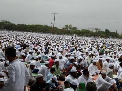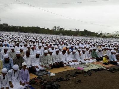 मुस्लीमांचा पवित्र महिना रमजान संपला असून मुस्लीमांनी ईद सर्वांना शुभेच्छा देत साजरी केली. (छायाचित्र - दत्ता खेडेकर)