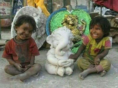 गणेशोत्सवाचा आनंद हा सगळीकडे सारखाच असतो, राजाच्या महालात आणि गरिबाच्या झोपडीतही बाप्पांच्या आगमनाचा उत्साह सारखाच असतो हेच या फोटोतून दिसून येते.