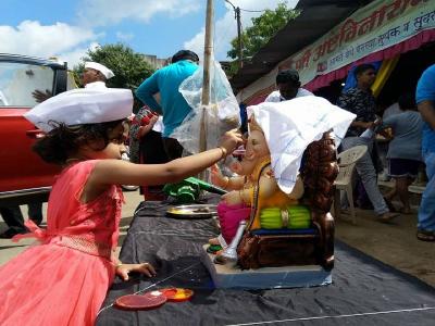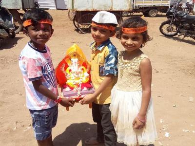 गणरायाच्या आगमनाचा आनंद हा चिमुकल्यांच्याही चेहऱ्यावर दिसून येत आहे, गणपती बाप्पा मोरया....