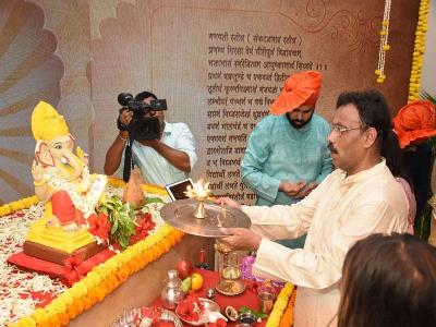 सांस्कृतिक कार्यमंत्री विनोद तावडे यांच्या घरी गणरायाची प्रतिष्ठापना करण्यात आली आहे.