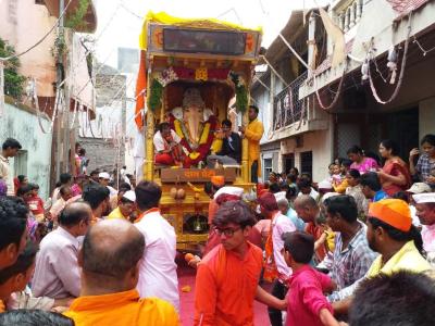 खामगाव शहरात गणेश विसर्जन मिरवणुकीस रविवारी अकरा वाजता सुरुवात झाली. मिरवणुकीत सर्वात आधी मानाचा गणपती म्हणून ओळखला जाणारा लाकडी गणपतीची पालखी आहे.