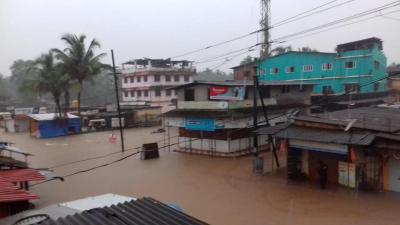सावंतवाडी तालुक्यातील तळवडे येथील बाजारपेठेत पुराचे पाणी शिरल्याने अनेक दुकानांचे नुकसान झाले.