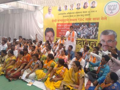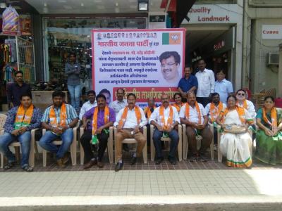 डोंबिवलीमध्ये भाजपाचे पदाधिकारी, नगरसेवक, कार्यकर्ते पूर्वेकडील पक्ष कार्यालयालगत बसलेत उपोषणाला.
