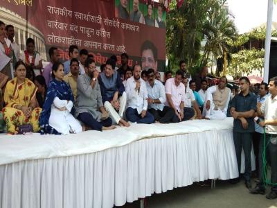 अहमदनगरमध्ये भाजपाच्या कार्यकर्त्यांचे जिल्हाधिकारी कार्यालयासमोर धरणे अांदोलन