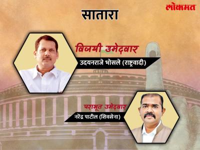 सातारा लोकसभा मतदारसंघ - राष्ट्रवादी काँग्रेसच्या उदयनराजे भोसले यांनी 5 लाख 76 हजार 78 मते घेत शिवसेनेच्या नरेंद्र पाटील यांचा पराभव केला.