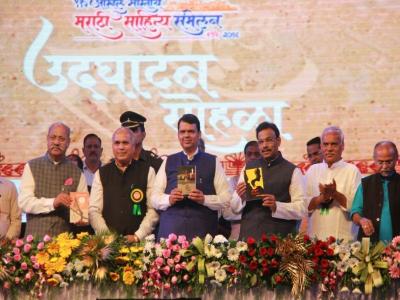 91 व्या अखिल भारतीय मराठी साहित्य संमेलनाचे शुक्रवारी बडोदे येथे औपचारिक उद्घाटन झाले. यावेळी फडणवीस यांच्यासह राज्याचे सांस्कृतिक मंत्री विनोद तावडे, स्वागताध्यक्षा राजमाता शुभांगिनीराजे गायकवाड, सिक्कीमचे राज्यपाल श्रीनिवास पाटील, संमेलनाध्यक्ष लक्ष्मीकांत देशमुख, अंजली देशमुख, मावळते अध्यक्ष डॉ. अक्षयकुमार काळे, गुर्जर साहित्यिक सितांशु यशचचंद्र, महाराजा समरजितसिंह गायकवाड, साहित्य महामंडळाचे अध्यक्ष डॉ. श्रीपाद जोशी, महापौर भरत डांगर आदी मान्यवर उपस्थित होते.
