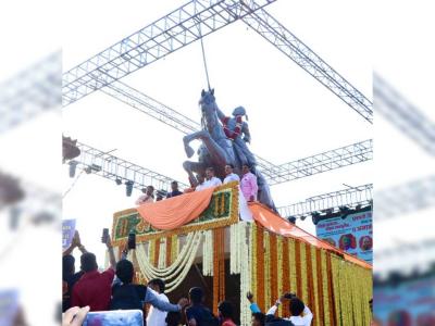 जळगावत जिल्ह्यातील चाळीसगाव येथे छत्रपती शिवाजी महाराजांच्या अश्वारुढ पुतळ्याचे मोठ्या दिमाखात अनावरण. पाहा Photos...