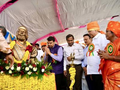 अनावरण कार्यक्रमात फडणवीसांनी उपस्थितांना संबोधित देखील केलं. "राजकारभाराचा मोठा आदर्श छत्रपतींनी निर्माण केला. जलसंवर्धन, वनसंवर्धन, गरीब कल्याण, अत्याचारविरहित राजवट, सागरी सुरक्षा अशा कितीतरी बाबी त्यांनी शिकविल्या. आजही कुठली समस्या आली, तर त्याचे उत्तर शिवचरित्रातून मिळते. आमच्या या महान राजाला कोटी कोटी दंडवत !", असं फडणवीस म्हणाले.