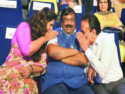 स्वातंत्र्य दिनाच्या ७०व्या वर्धापन दिनानिमित्त हा गौरव सोहळा आयोजित करण्यात आला होता. यावेळी पंकजा मुंडे सुधीर मुनगंटीवार आणि गिरीश महाजन हे त्रिकुट गुप्तगू करतानाचा क्षण.