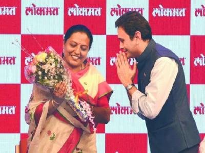 ‘लोकमत विधिमंडळ पुरस्कार’ सोहळ्याच्या निमित्ताने अनेक दिग्गज राजकारणी एकाच व्यासपीठावर एकत्र आले होते. लोकमतचे व्यवस्थापकीय संचालक देवेंद्र दर्डा आमदार यशोमती ठाकूर यांचं स्वागत करताना.