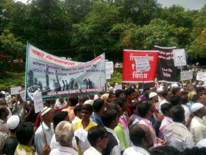 जैतापूर, दि. 9 - रिफायनरी प्रकल्पाविरोधात राजापूर तालुक्यातील नाणारसह परिसरातील 14 गावातील ग्रामस्थ एकवटले आहेत. या प्रकल्पाला तीव्र विरोध दर्शवण्यासाठी या 14 गावातील ग्रामस्थांनी शनिवारी तहसिलदार व प्रांत कार्यालयावर धडक मोर्चा काढला. या महामोर्चामध्ये शेकडो ग्रामस्थ सहभागी झाले होते. या मोर्चेक-यांनी यावेळी प्रकल्प रद्द करण्याची मागणी केली आहे. शिवाय, त्यांनी आपल्या व्यथा तहसिदार आणि प्रांत कार्यालयाकडे निवेदनाद्वारे दाखल केल्या आहेत. कोणत्याही परिस्थितीत हा प्रकल्प रद्द झालाच पाहिजे, यासाठी ग्रामस्थ आक्रमक झाले आहेत. दरम्यान, अणुऊर्जा प्रकल्पापाठोपाठ रिफायनरी प्रकल्पातील संघर्ष आणखीनच तीव्र होणार असल्याचं दिसते आहे. काय आहे नेमका प्रकल्प?केंद्र शासनाच्या भारत पेट्रोलियम, हिंदुस्तान पेट्रोलियम व इंडियन ऑईल अशी 51 टक्के, तर राज्य सरकारची 49 टक्के भागीदारी असलेला जगातील सर्वात मोठा दोन लाख कोटींचा रिफायनरी प्रकल्प तालुक्यातील नाणार -सागवे परिसरात येऊ घातला आहे. एकूण या प्रकल्पाला 15 हजार एकर जमीन आवश्यक असून काही एकर जागेवर तो उभा राहणार आहे. हा प्रकल्पही अणुऊर्जा प्रकल्पाप्रमाणेच प्रदूषणकारी असल्याचे आरोप स्थानिक जनतेतून होत असून आमच्या बागायती, भातशेती व निसर्ग यांचे रक्षण व्हावे या हेतूने येथील जनता प्रकल्पाविरुद्ध उभी ठाकली आहे. दरम्यान, हा प्रकल्पच रद्द झालाच पाहिजे, यासाठी व्यापक लढा उभारण्याचा निर्धार करण्यात आला आहे. याचाच एक भाग म्हणून शनिवारी (9 सप्टेंबर ) तहसिलदार कार्यालयावर मोर्चा काढण्यात आला.